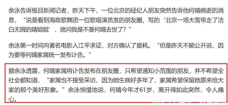 何晴的好友也透露大家也很注意保护何晴的信息,不向外界透露何晴生病的消息,努力让何晴给大众留下的印象始终是美好的。